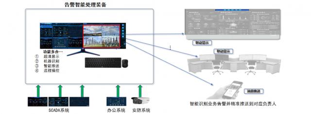 主動敏銳的“信息找人”。系統(tǒng)采用AI技術識別和告警推送,將SCADA等系統(tǒng)的各類告警信息提煉加工,自動判斷警情的級別、類別和責任部門,自動執(zhí)行預定義的業(yè)務處理流程,將告警信息推送給對應的調度員,操作區(qū)自動切換成告警主機畫面。