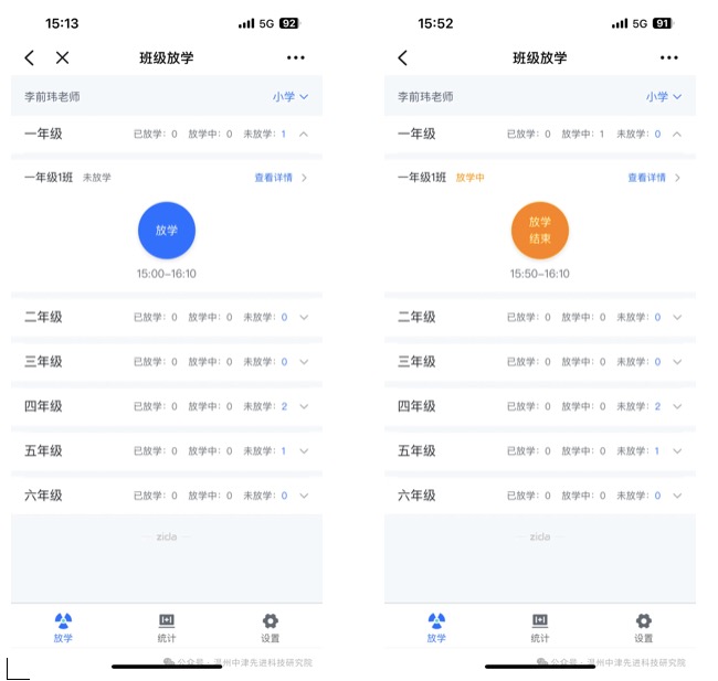 系統以班級為單位,實時顯示未放學、已放學、延遲放學三種狀態,并通過顏色區分,使家長和學生能夠在遠距離清晰地了解班級的放學情況。這種可視化的設計大大提高了接送效率,減少了因信息不透明而導致的混亂和擁堵。
