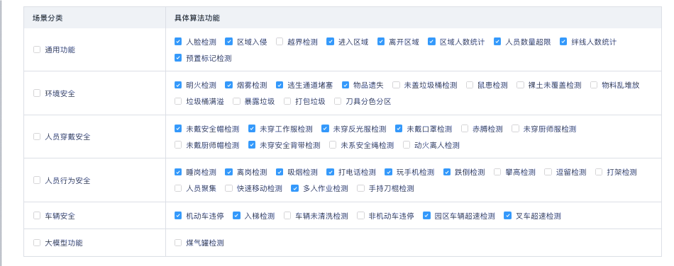 智慧園區安全生產AI算法集對生產區域實時監控分析,識別安全隱患和異常情況,及時發現事故風險并進行報警,提高生產效率,降低事故風險,實現安全生產的可持續發展。邊緣計算網關常用的AI應用如下: