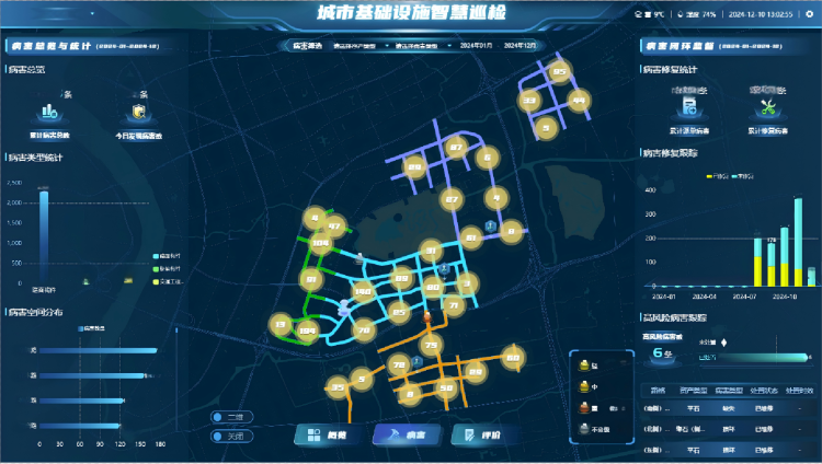針對(duì)前端采集的病害隱患,隧道股份城市運(yùn)營(yíng)還建設(shè)了“城市基礎(chǔ)設(shè)施智慧巡檢平臺(tái)”,為后端病害處置提供了高效方案。通過(guò)AI算法推動(dòng)養(yǎng)護(hù)策略從“被動(dòng)維修”轉(zhuǎn)向“主動(dòng)防護(hù)”,再大幅降低了養(yǎng)護(hù)人員對(duì)病害線索篩選判斷的工作量的同時(shí),可實(shí)現(xiàn)4小時(shí)內(nèi)“病害發(fā)現(xiàn)、預(yù)警上報(bào)、派單處置”的智能化全流程管理,真正實(shí)現(xiàn)為道路“治未病”。