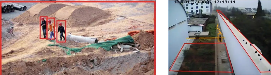 可基于AI視頻智能分析技術(shù)實(shí)現(xiàn)。通過(guò)在監(jiān)控?cái)z像頭中設(shè)定警戒區(qū)域,實(shí)時(shí)監(jiān)測(cè)人員或物體的異常行為,如翻越圍墻、靠近未防護(hù)的邊緣或洞口等,并及時(shí)發(fā)出警報(bào)。同時(shí),系統(tǒng)可與安全防護(hù)設(shè)施聯(lián)動(dòng),如自動(dòng)觸發(fā)安全網(wǎng)或防護(hù)欄的警示裝置,確保工人遠(yuǎn)離危險(xiǎn)區(qū)域。