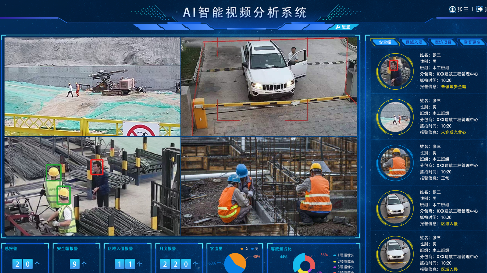 針對(duì)建筑工程施工項(xiàng)目管理點(diǎn)位多、管理范圍大,監(jiān)控不到位等問(wèn)題,中建八局發(fā)展建設(shè)有限公司開(kāi)發(fā)了“建筑工地‘慧眼’AI 識(shí)別系統(tǒng)”。本系統(tǒng)將監(jiān)控?cái)z像頭、顯示器、報(bào)警器等終端設(shè)備接入到邊緣計(jì)算服務(wù)器,通過(guò)AI算法包,對(duì)視頻提取的人的不安全行為、物的不安全狀態(tài)等進(jìn)行精準(zhǔn)識(shí)別,并將 AI 分析結(jié)果實(shí)時(shí)傳輸至服務(wù)器,提供人員、環(huán)境、設(shè)備等安全、質(zhì)量風(fēng)險(xiǎn)事件識(shí)別和報(bào)警服務(wù),全時(shí)偵測(cè)待檢測(cè)事件,部分替代人工檢查,使工程建設(shè)項(xiàng)目現(xiàn)場(chǎng)管理更加高效便捷。