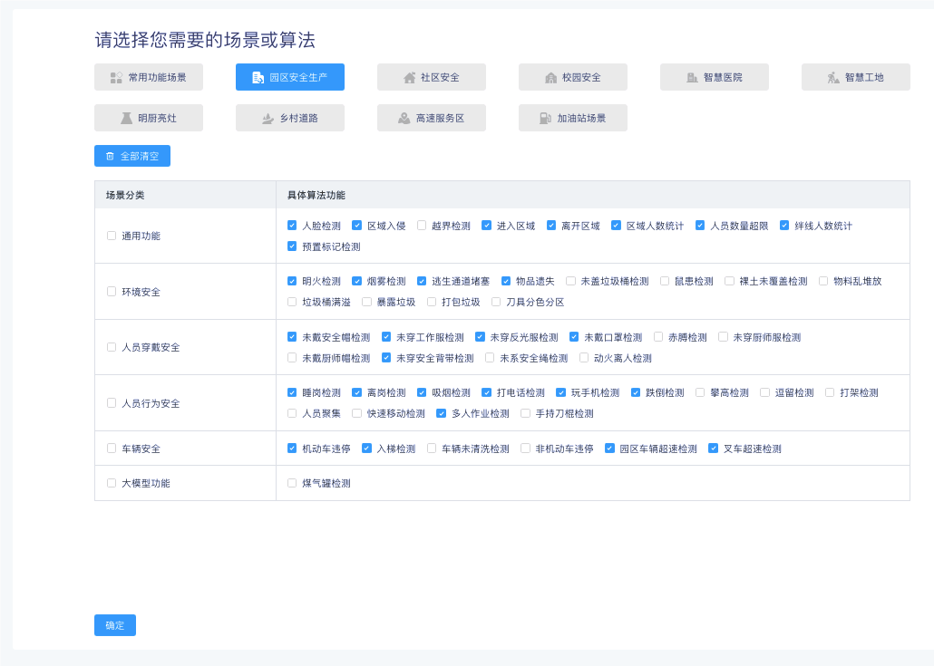 為了滿足用戶靈活算法應用,跨行業AI算法選擇,公司將算法庫分配邏輯進行調整,調整后可以在智能分析AI盒子、AI服務器上120多種法任選30種加載使用。