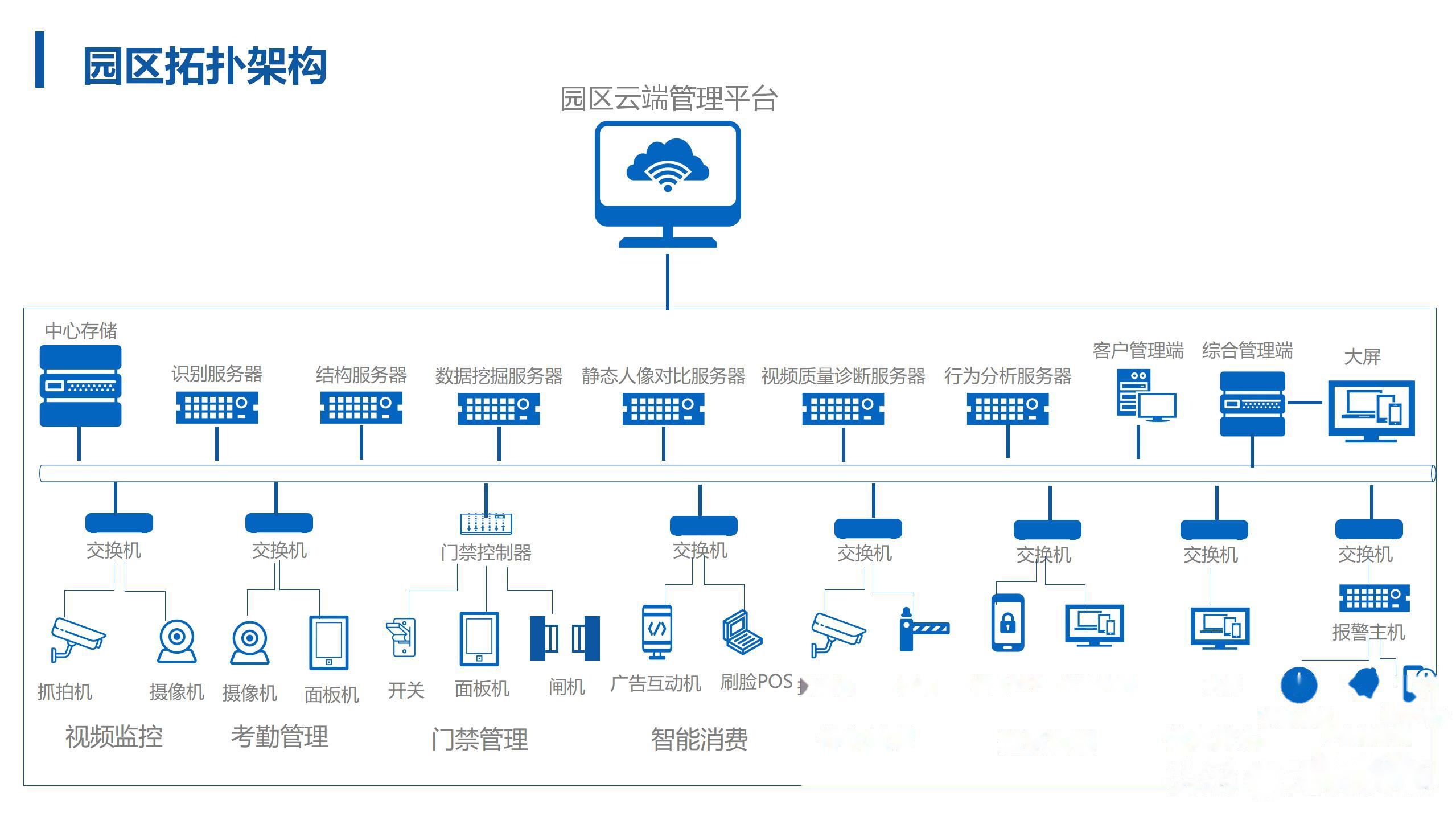 智慧園區(qū)AI智能安防監(jiān)控系統(tǒng)解決方案通過融合物聯(lián)網(wǎng)、大數(shù)據(jù)、云計算、人工智能等前沿技術(shù),構(gòu)建了一個全域感知、智能分析、快速響應(yīng)的安防體系,旨在提升園區(qū)安全管理效率、降低人力成本,并實現(xiàn)安全管理的智能化與精準(zhǔn)化。以下從系統(tǒng)架構(gòu)、核心功能、技術(shù)優(yōu)勢、應(yīng)用場景及實施步驟五個方面進(jìn)行詳細(xì)闡述: