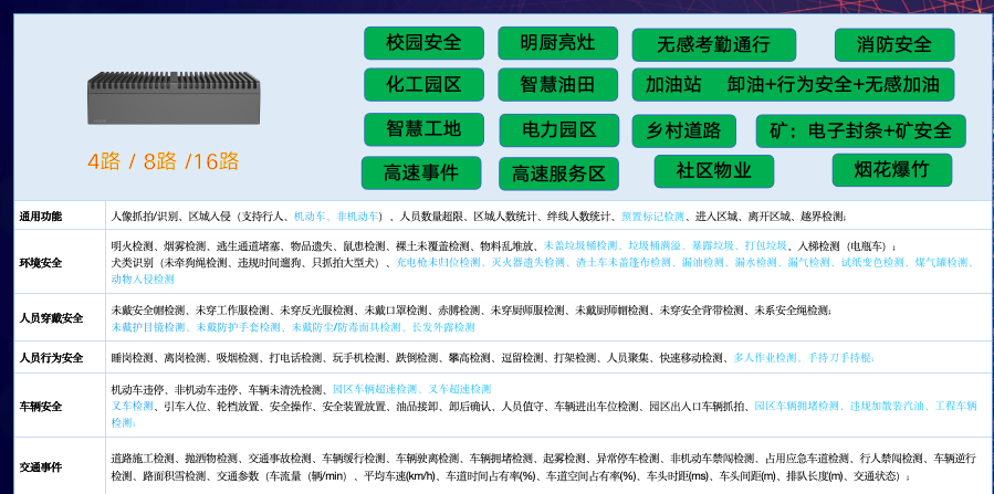 應(yīng)用前景?:AI盒子在監(jiān)控領(lǐng)域的應(yīng)用前景廣闊。隨著智慧城市、智慧交通、智慧工業(yè)等概念的普及和實施,AI盒子將成為這些領(lǐng)域中不可或缺的智能設(shè)備。同時,隨著5G技術(shù)的推廣和應(yīng)用,AI盒子的實時性和高效性將得到進一步提升。